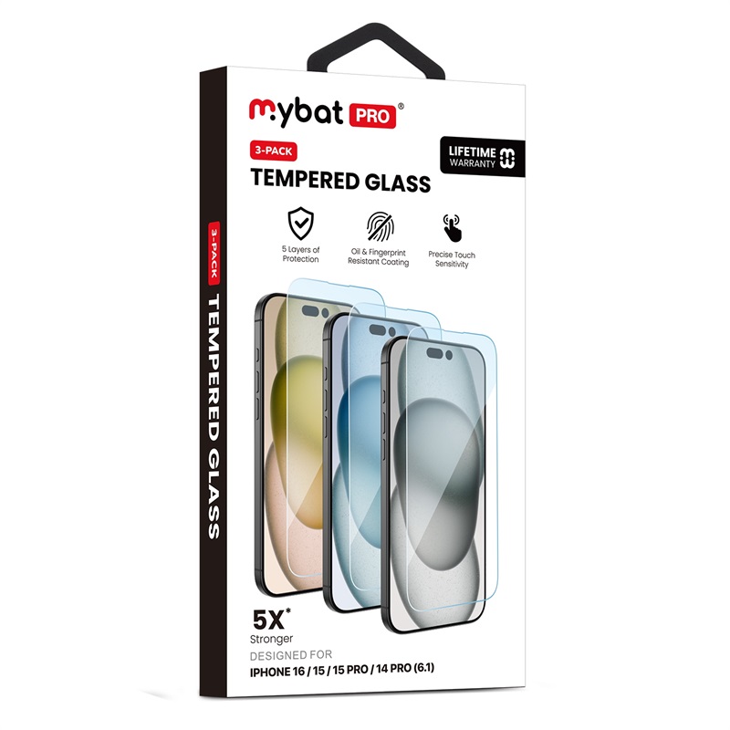 HOME:   Apple -> iPhone 16 -> Tempered Glass->MyBat Pro Tempered Glass Screen Protector (2.5D)(3-pack) for Apple iPhone 16/iPhone 15 Pro / 15 - Clear