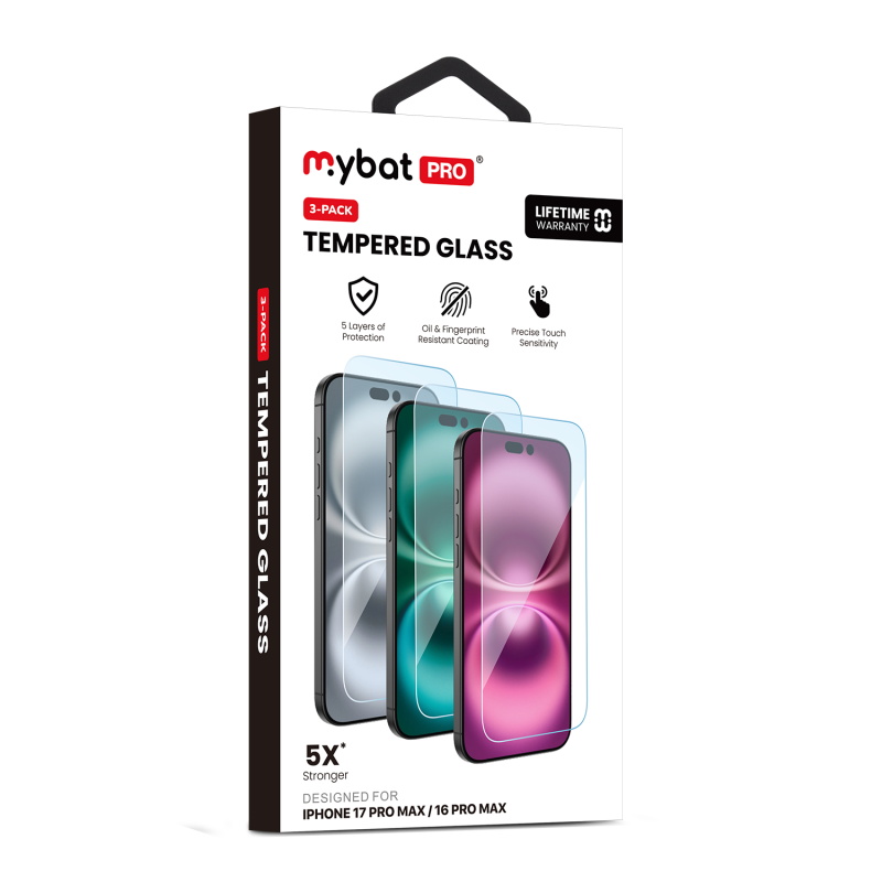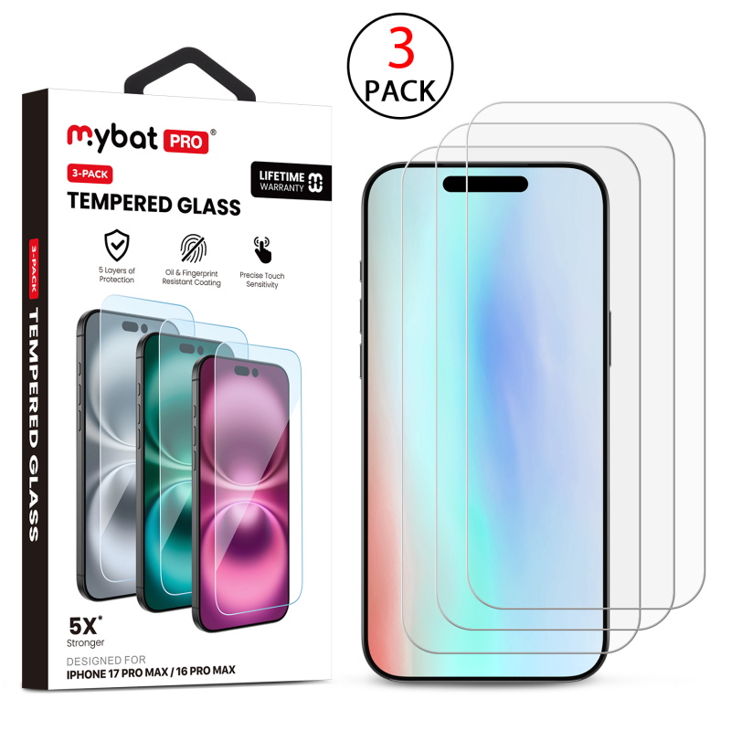HOME:   Apple -> iPhone 17 Pro Max -> Tempered Glass->MyBat Pro Tempered Glass Screen Protector (2.5D)(3-pack) for Apple iPhone 17 Pro Max / 16 Pro Max - Clear