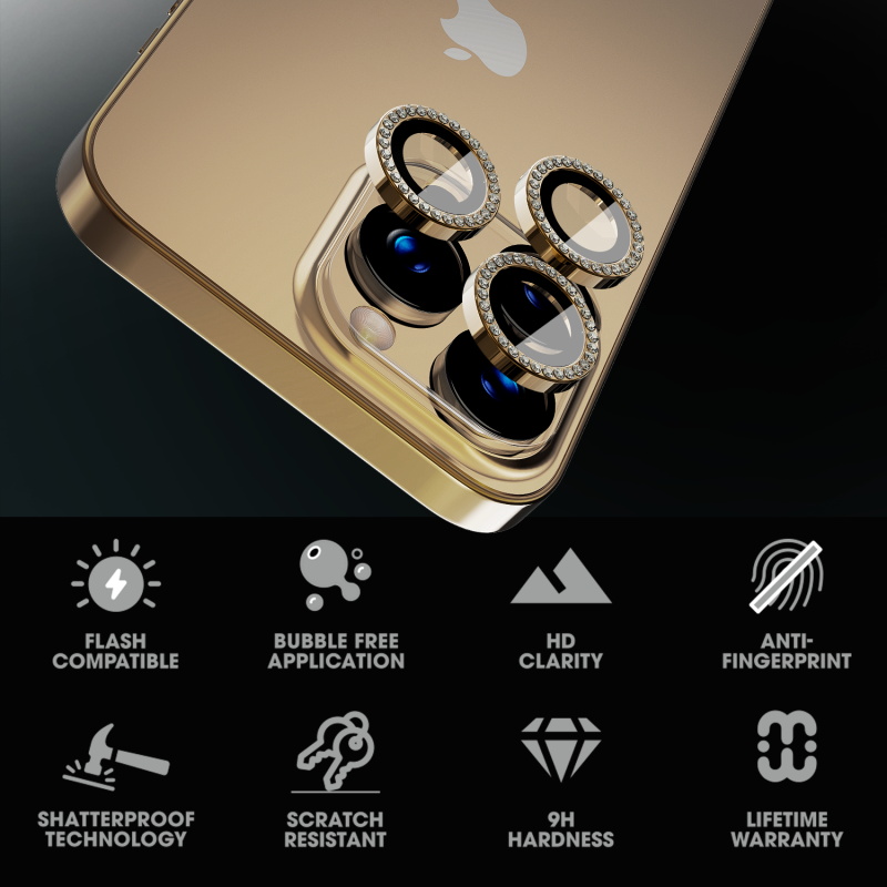 Each protector features a bedazzled ring that adds a touch of glamor to their photography endeavors. Designed for a flush fit, it ensures unhampered functionality and high-definition clarity for stunning shots. Crafted with a strength 5X greater than standard glass, the GlamCam Protector safeguards lenses from scratches, scuffs, and smudges while maintaining peak camera performance. The premium oleophobic coating further enhances lens clarity while repelling oil, dirt, and fingerprints. Offer your customers an elegant and secure camera lens solution that truly sparkles!