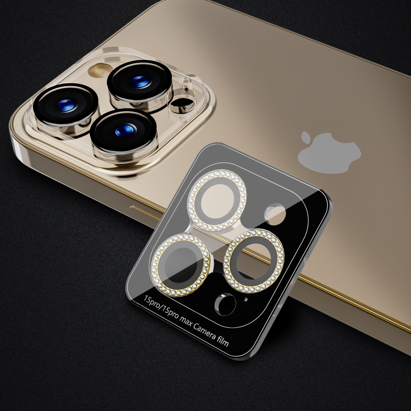 Protect your customers' iPhone 15 Pro Max (6.7) / 15 Pro (6.1) camera with the GlamCam Tempered Glass Camera Lens Protector, a unique fusion of style and protection.