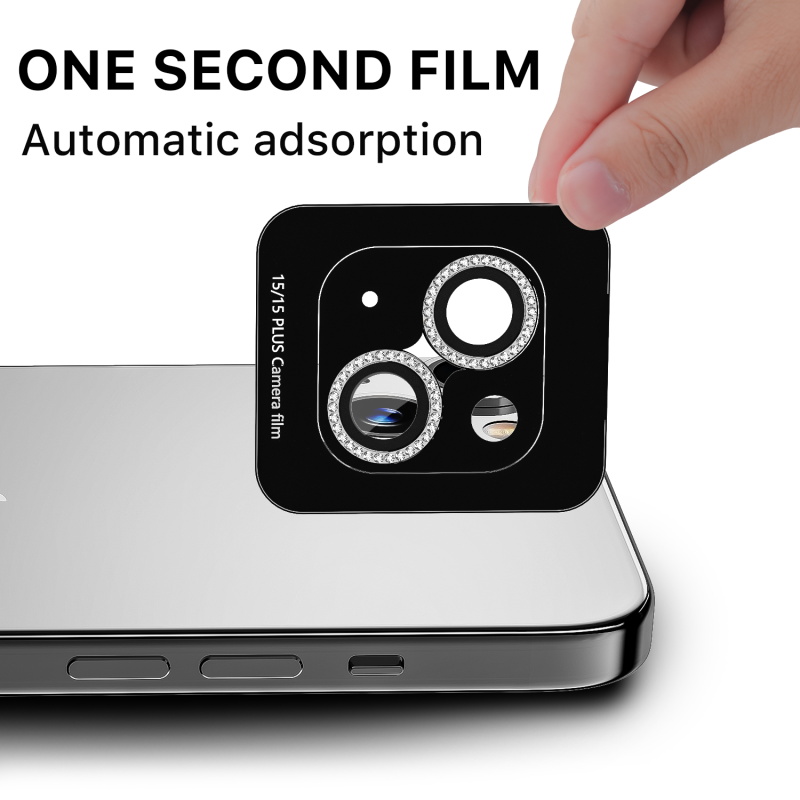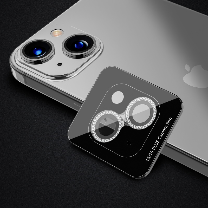 Protect your customers' iPhone 15 (6.1) / 15 Plus (6.7) camera with the GlamCam Tempered Glass Camera Lens Protector, a unique fusion of style and protection.