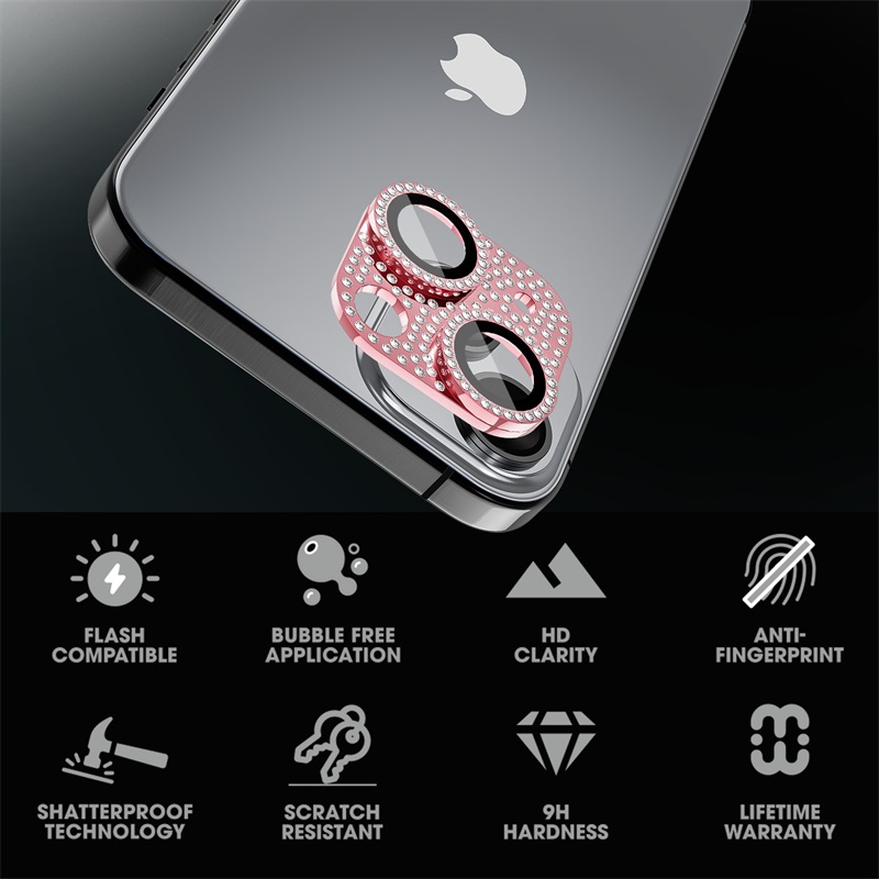 HOME:   Lens Protectors->MyBat Pro Tempered Glass GlamShot Lens Protector for Apple iPhone 15 / 15 Plus - Pink
