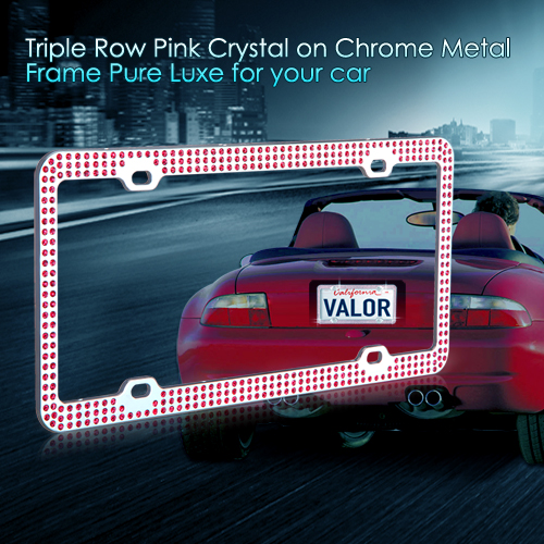 Valor Pink Crystals Chrome Coating Metal Frame With Triple Row Crystals