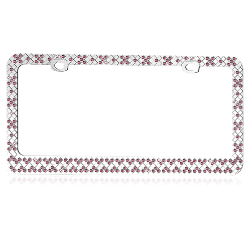 With this checkered pink crystal rhinestones chrome license plate frame, your customers' car will be the envy of the neighborhood. The frame measures 12.25 x 6.25 inches, the ideal size, and fits any car. The frame meets all state laws and won't block any registration tags. This durable stainless steel license plate holder provides maximum protection from weather conditions and will not easily bend or deform. License plate screws, and screw covers, are included in the package.