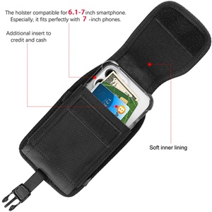 LUXMO Extra Large Vertical Universal Leather Pouch w/ Front Buckle - Black (Retail Packaging)