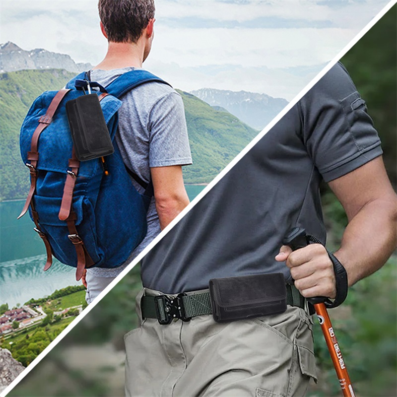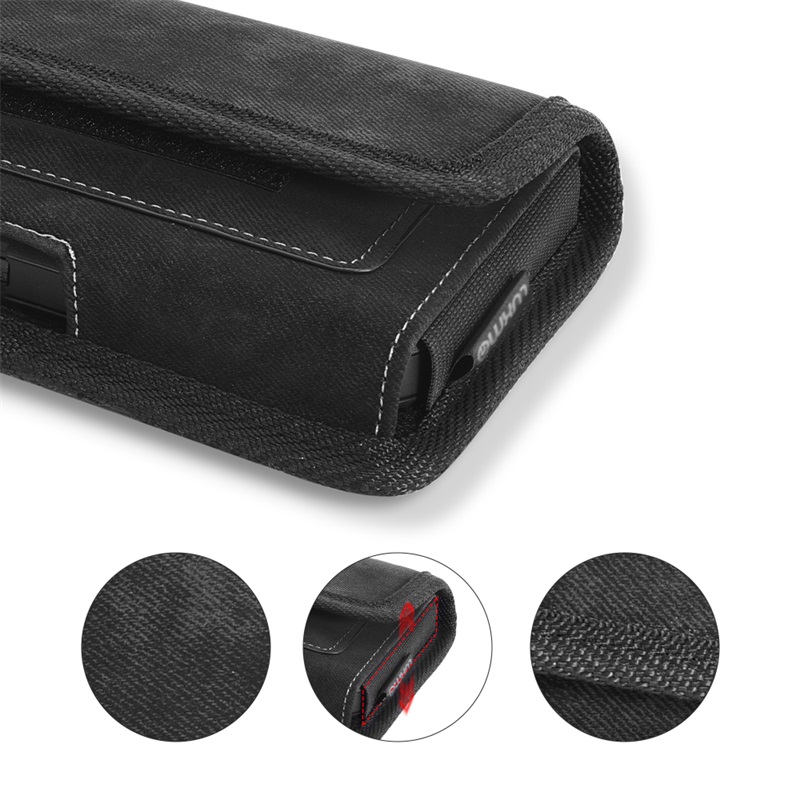 LUXMO LARGE SIZE HORIZONTAL UNIVERSAL SPECIAL FABRIC POUCH WITH DUAL CARD SLOTS - BLACK DENIM FABRIC