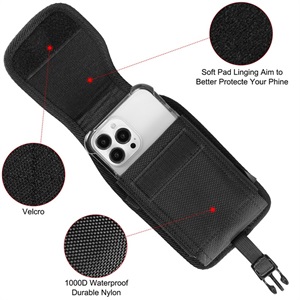 LUXMO Large Vertical Universal Leather Pouch w/ Front Buckle - Black