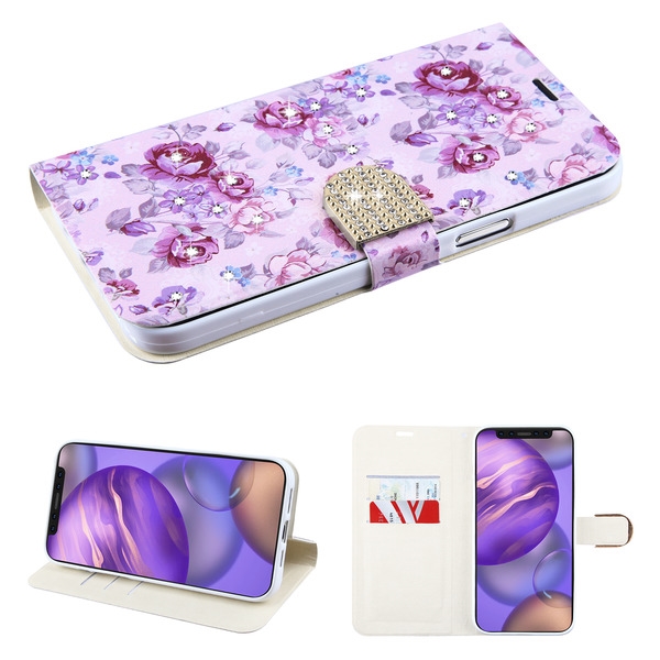 HOME:   Apple -> iPhone 12 mini -> Phone Cases->MyBat MyJacket Wallet Diamond Series for Apple iPhone 12 mini - Fresh Purple Flowers