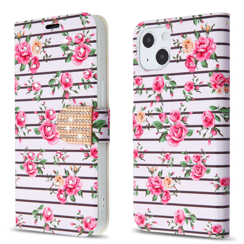 HOME:   Apple -> iPhone 13 mini -> Phone Cases->MyBat MyJacket Wallet Diamond Series for Apple iPhone 13 mini - Pink Fresh Roses