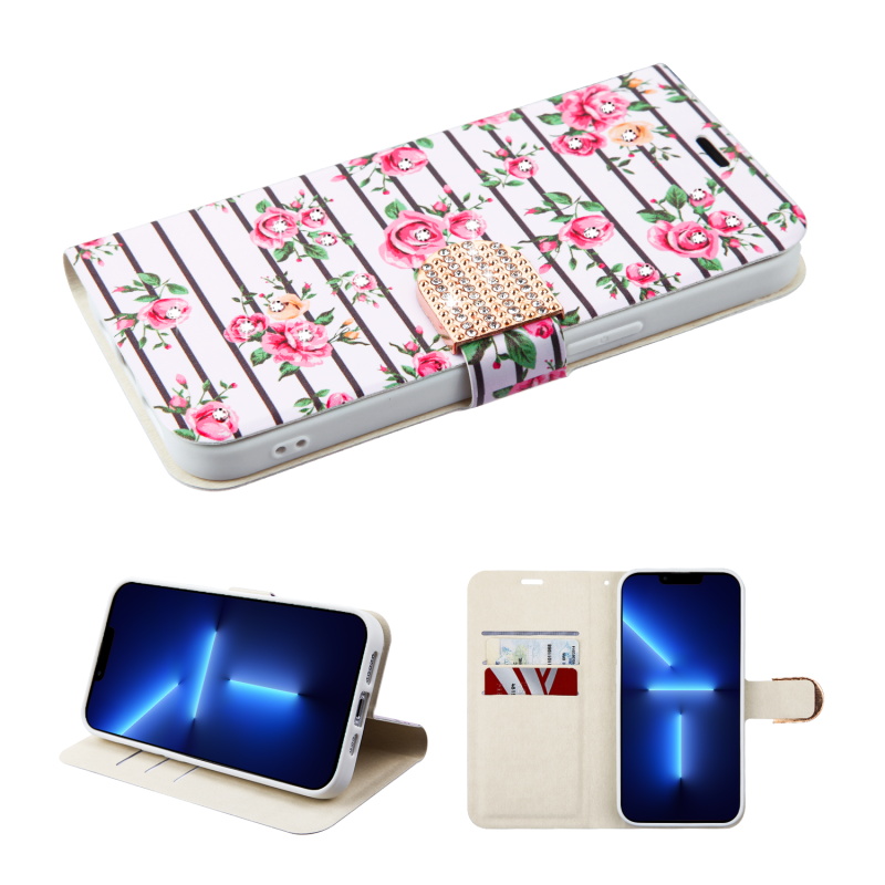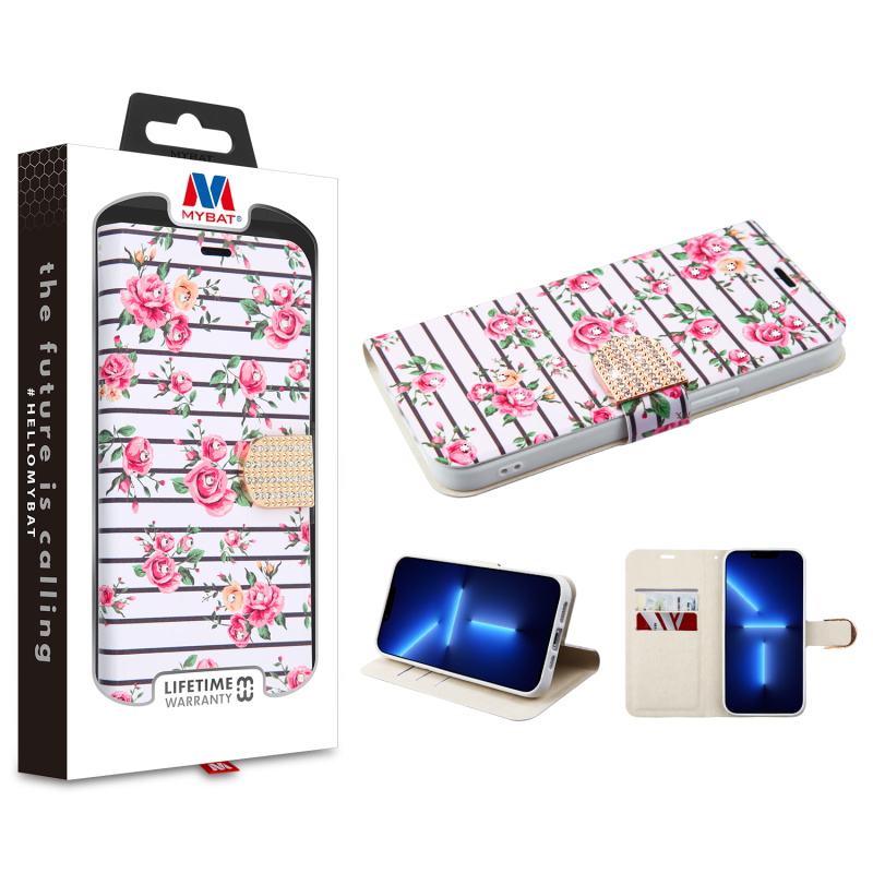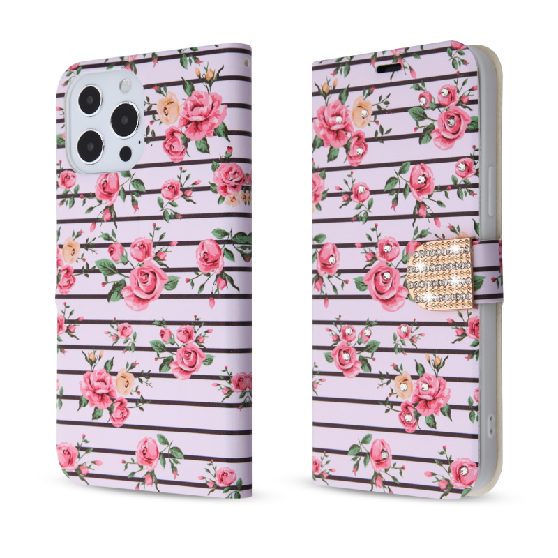 HOME:   Apple -> iPhone 13 Pro Max -> Phone Cases->MyBat MyJacket Wallet Diamond Series for Apple iPhone 13 Pro Max - Pink Fresh Roses