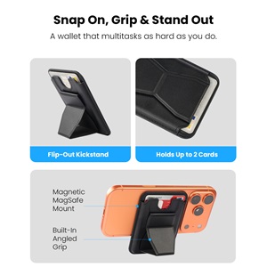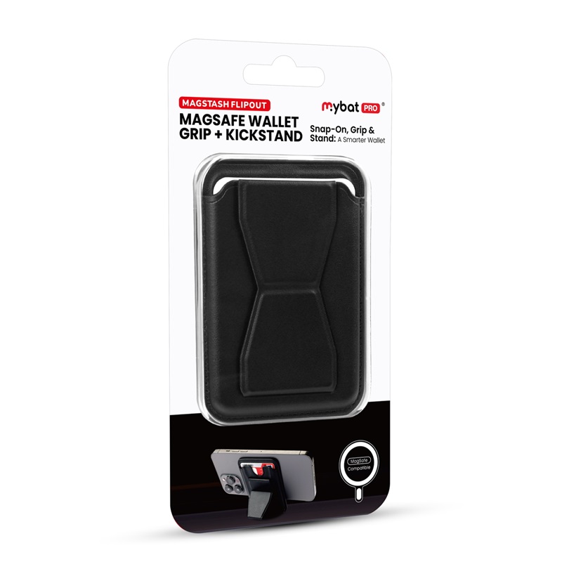 MyBat Pro MagStash FlipOut MagSafe Wallet Grip + Kickstand - Black