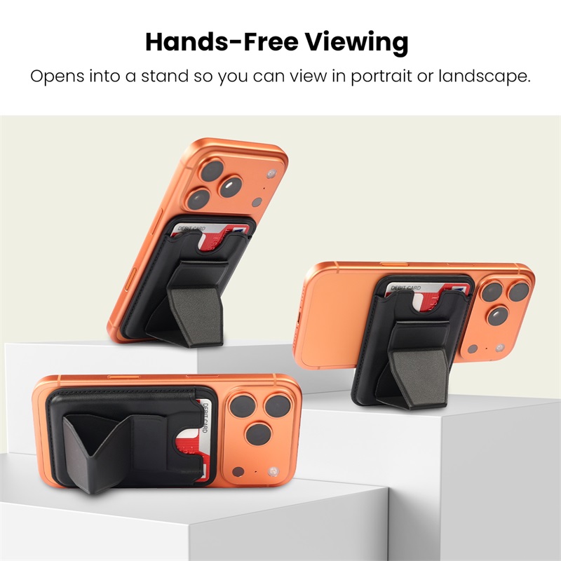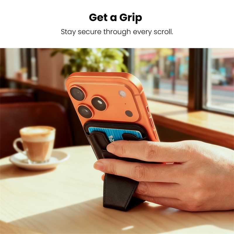 You’ll flip out for this one. The MagStash FlipOut combines a MagSafe wallet, built-in stand, and angled grip into one sleek and functional design. With space for two essential cards, it’s perfect for daily carry without the bulk. The flip-out kickstand props your phone in portrait or landscape mode for easy streaming, while the grip gives you extra control while texting or snapping. Wrapped in premium vegan leather, it’s a multitasking must-have that stands out on its own.