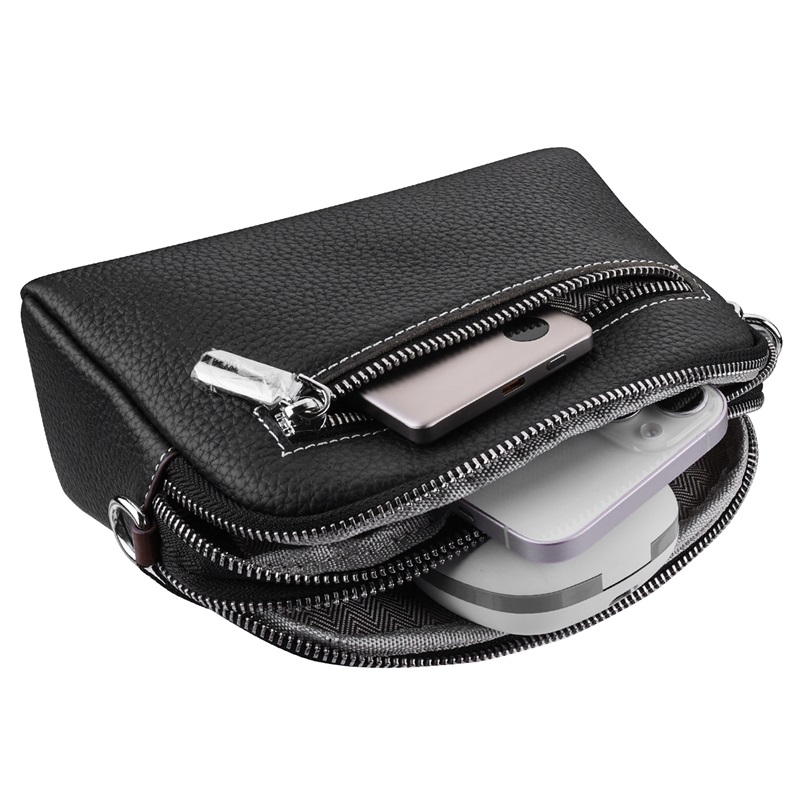 Roykin TOGO Small Textured Cowhide All-in-One Crossbody Shoulder Bag-Black