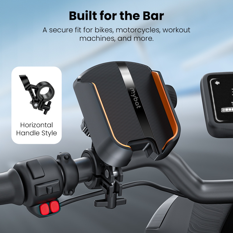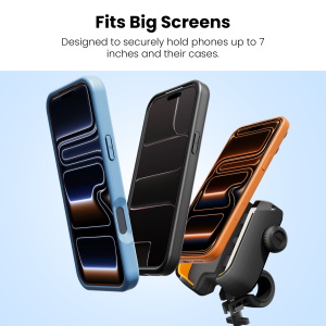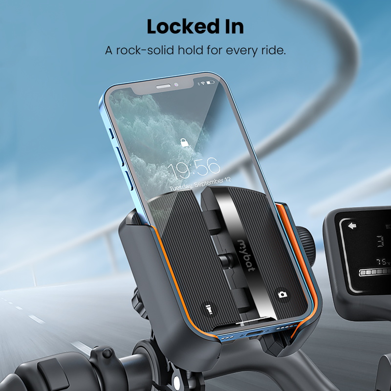Quit white-knuckling your device and start pinning the throttle with the MyBat RideLock Motorcycle Phone Mount and Phone Holder for Bike. This heavy-duty bike phone mount and motorcycle phone mount transforms your ride into a high-performance command center for GPS navigation and hands-free recording without compromising the soul of your ride. It is built to survive high-speed engine vibrations and the bone-jarring impacts of a technical downhill trail. This handlebar phone holder locks your device down with a permanent and bolted-on feel that keeps your focus on the road ahead. Whether you need a motorcycle handlebar phone mount for the highway or a bike phone holder for the trail, it is specifically designed for riders who need their maps and apps front and center without the constant worry of gear failure. The adjustable arms provide a rock-solid fit for all major smartphones including larger devices with screens up to 7 inches. This ensures a secure, vibration-free fit.