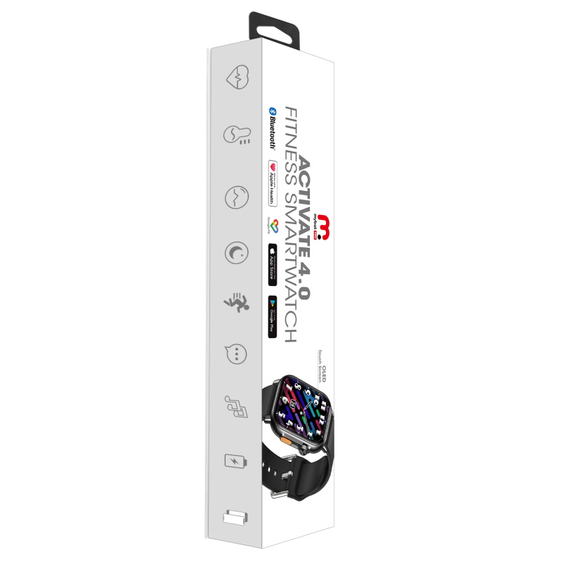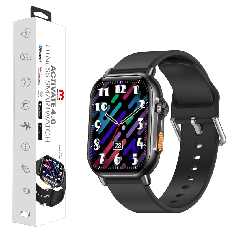 Provide your customers with more than the standard health monitoring features they need with the Activate Fitness 4.0 Smartwatch from MyBat Pro! This smartwatch is an excellent addition to your inventory, offering progress-tracking app integration and a competitive wholesale price. Thanks to the attractive packaging, the Activate 4.0 is sure to fly off your shelves!