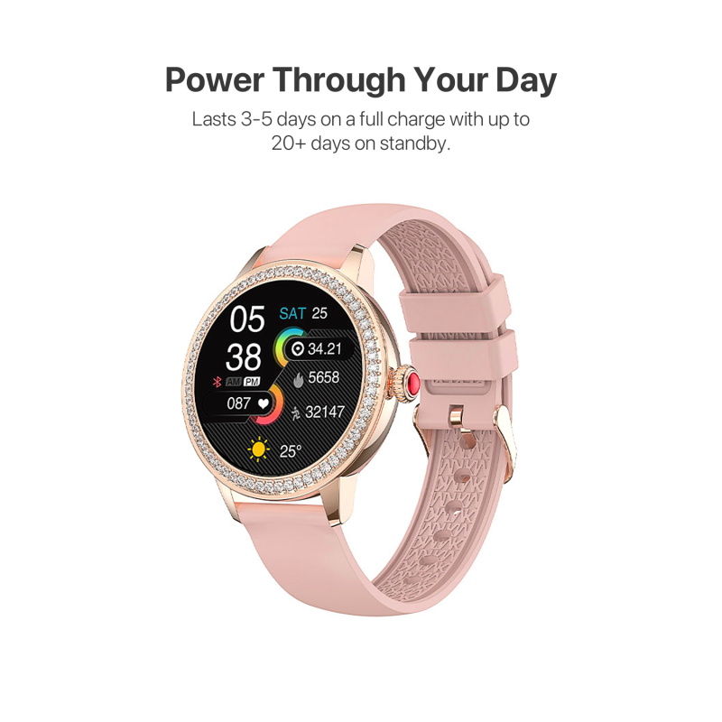 Wear your crown, track your life. The MyBat Pro Crown Diamond Smart Watch is the ultimate combination of elegance and performance. Featuring glittering rhinestones for a regal look, this smartwatch seamlessly integrates health tracking with smart connectivity. Keep track of your fitness goals with features like heart rate monitoring, step counting, sleep analysis, and multiple sport modes. Stay effortlessly connected with call, message, and app notifications, and enjoy control over music right from your wrist. Designed for modern lifestyles, the 15-day battery life keeps you powered up, while the customizable watch faces allow you to match your style effortlessly. Compatible with both iOS and Android, this luxury smartwatch is perfect for those who demand both style and functionality.