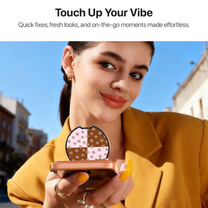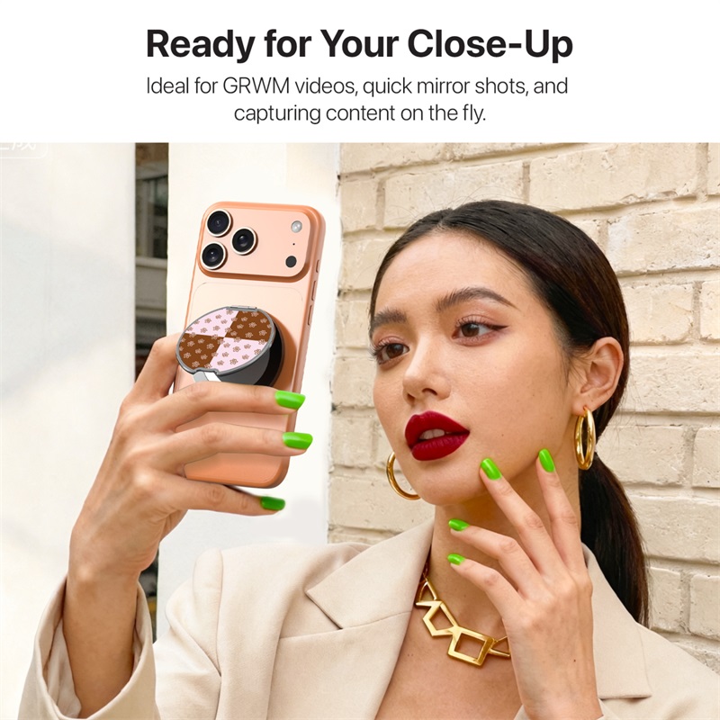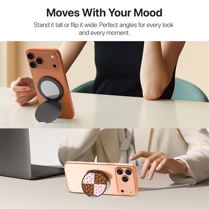 HOME:   Stands and Holders->MyBat Design Lab MagSafe Selfie Mirror Kickstand - Black - Flower Patches