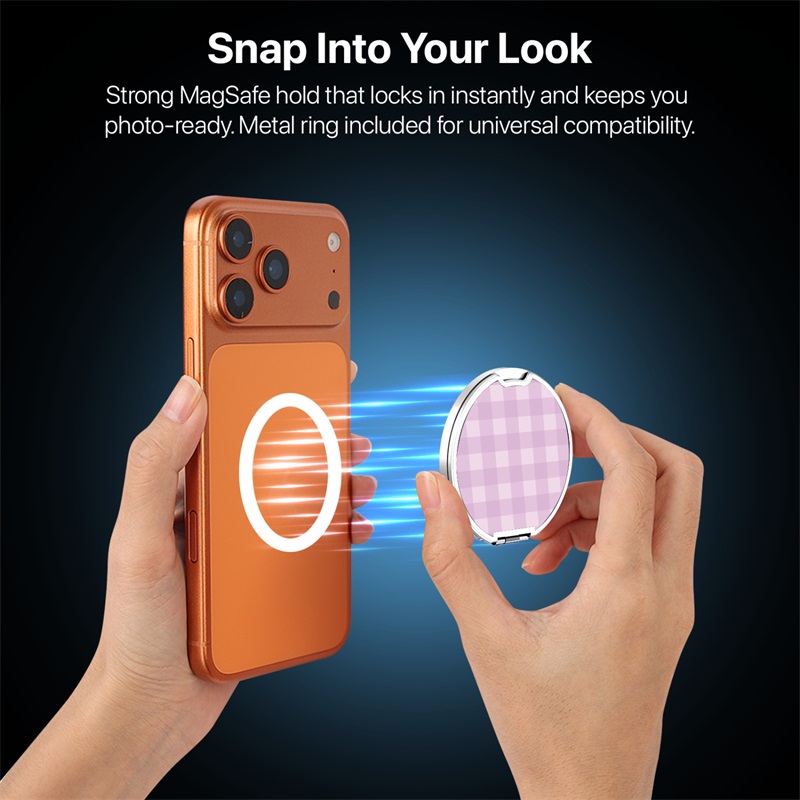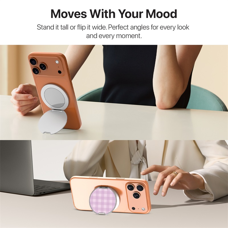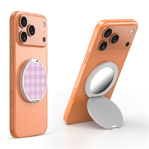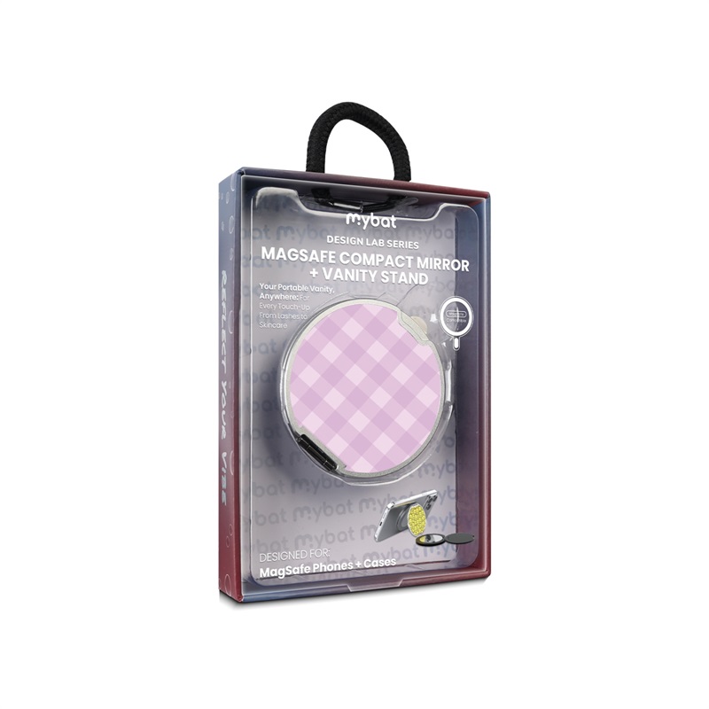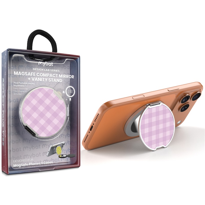 HOME:   Stands and Holders->MyBat Design Lab MagSafe Selfie Mirror Kickstand - Silver - Purple Plaid