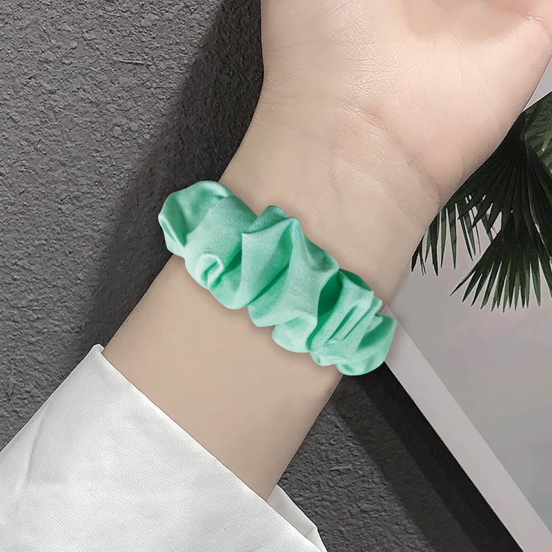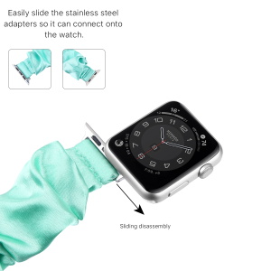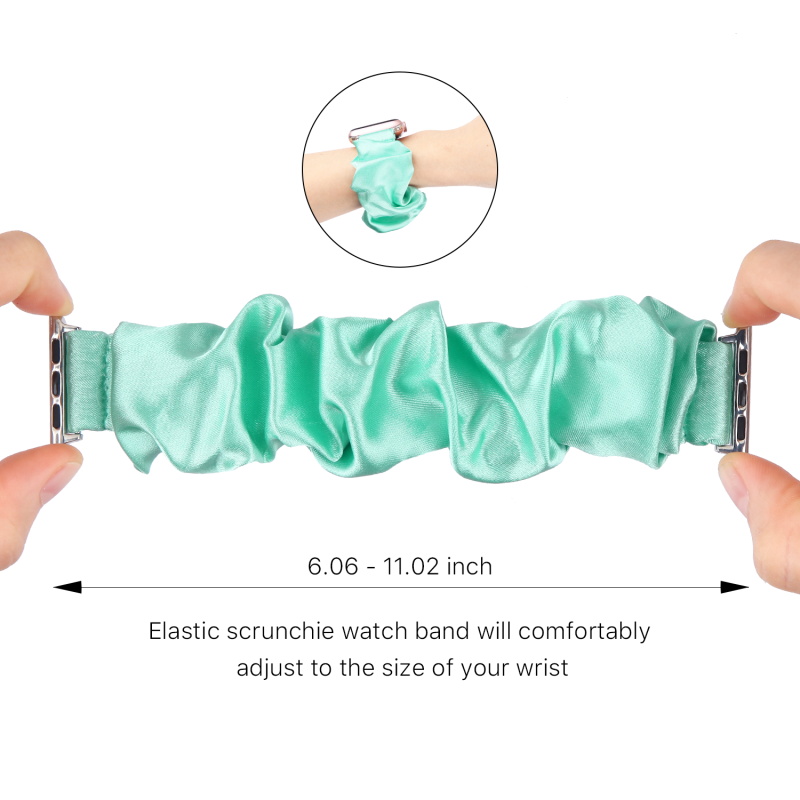 The green cotton and polyester elastic band make the Scrunchie incredibly comfortable, stretching to fit any wrist size. It is also breathable, soft, and machine washable. The stainless steel connectors provide quick and easy assembly and fit any Apple Watch model, including the Series 7. Afterward, they can slip it on to add a throwback flair to any outfit and make a statement from their wrist!