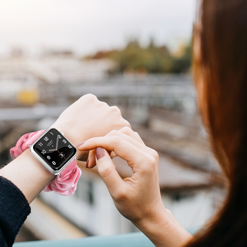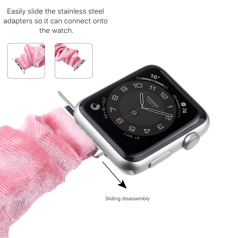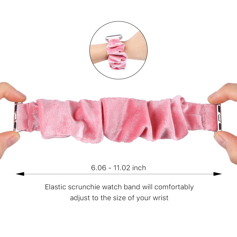 The pink cotton and polyester elastic band make the Scrunchie incredibly comfortable, stretching to fit any wrist size. It is also breathable, soft, and machine washable. The stainless steel connectors provide quick and easy assembly and fit any Apple Watch model, including the Series 7. Afterward, they can slip it on to add a throwback flair to any outfit and make a statement from their wrist!