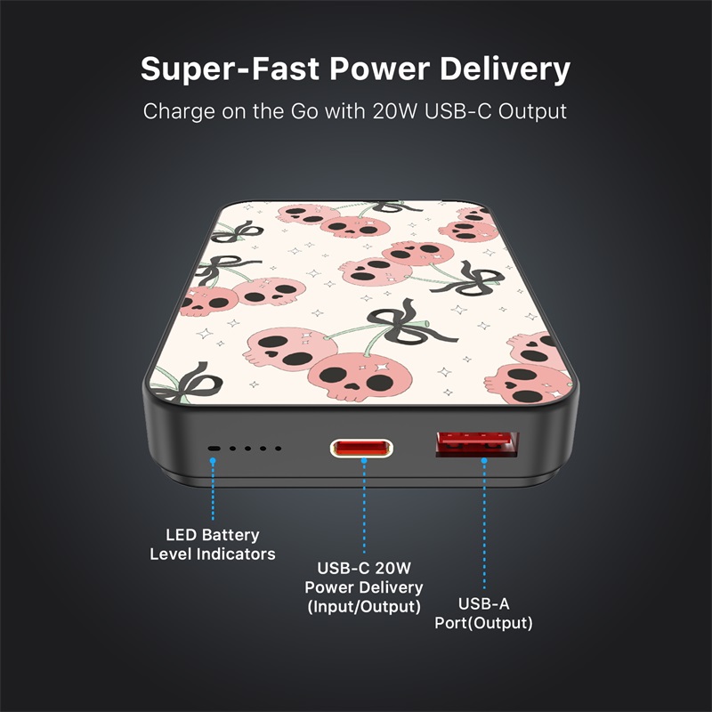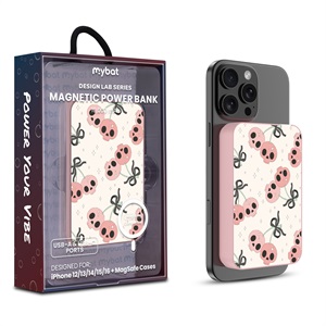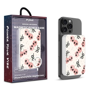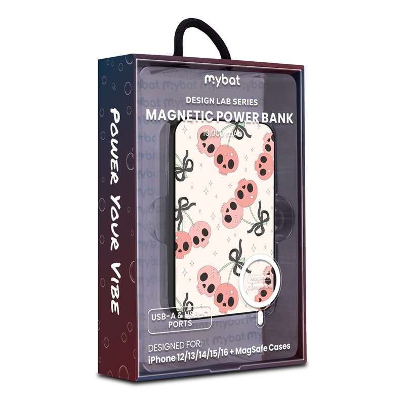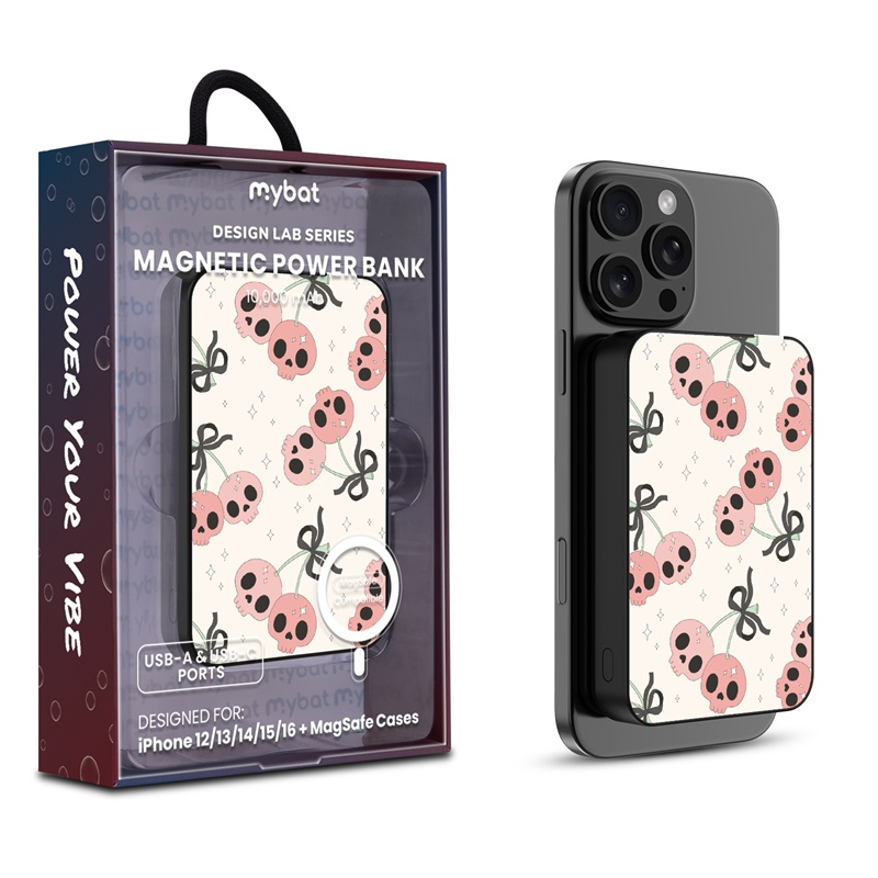 MyBat Design Lab 10000mAh Magnetic Wireless Power Bank - Black - Cherry Skulls