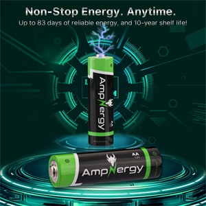 Power through any task with AmpNergy’s 12-pack of AA Alkaline Batteries—built for reliable, long-lasting energy in your everyday devices. From remotes to cameras, clocks, and more, these batteries deliver consistent, sustained power so you never have to slow down. With a 10-year shelf life, they stay charged even when stored, ensuring you’re always ready when you need them. Free from harmful cadmium and mercury, AmpNergy batteries are safe for you and safer for the planet. Engineered for extreme conditions, they perform at temperatures ranging from -13°F to 140°F, so no matter where life takes you, your devices stay powered.