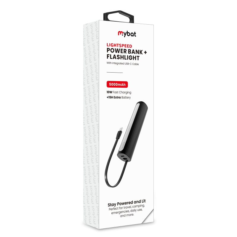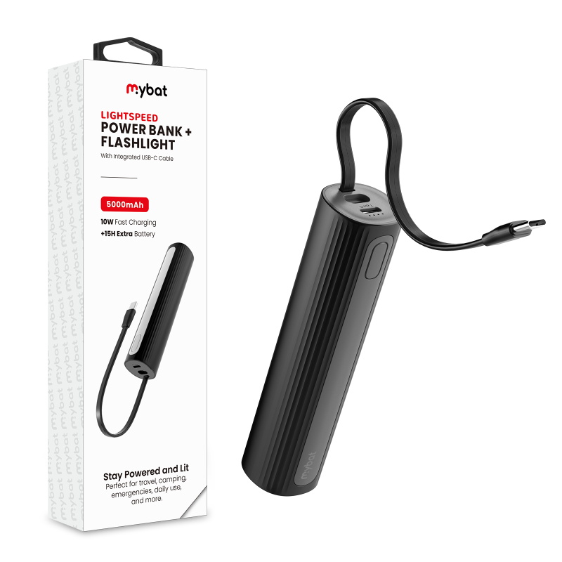 MyBat LightSpeed 5000 mAh Power Bank + Flashlight - Black