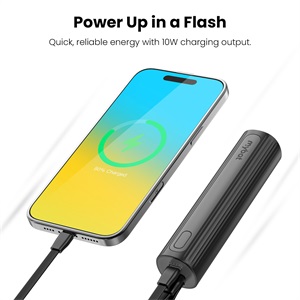 Stay powered and lit up wherever you go with the Lightspeed Power Bank + Flashlight. This versatile 2-in-1 power bank and flashlight. Featuring a 5000mAh battery, 10W fast charging, and a built-in USB-C charging cable, this compact power solution is designed for on-the-go convenience. With enough capacity to provide up to 15 hours of extra battery life for most smartphones or a full device recharge, you'll never have to worry about running out of power when you need it most. The integrated LED flashlight adds an extra layer of utility, making it ideal for travel, outdoor adventures, emergencies, and everyday use. With USB-C input and output, it delivers fast and efficient charging for smartphones, tablets, and other USB-C devices, all without the need for extra cables. Its lightweight, pocket-friendly design ensures you can carry power and light wherever life takes you.