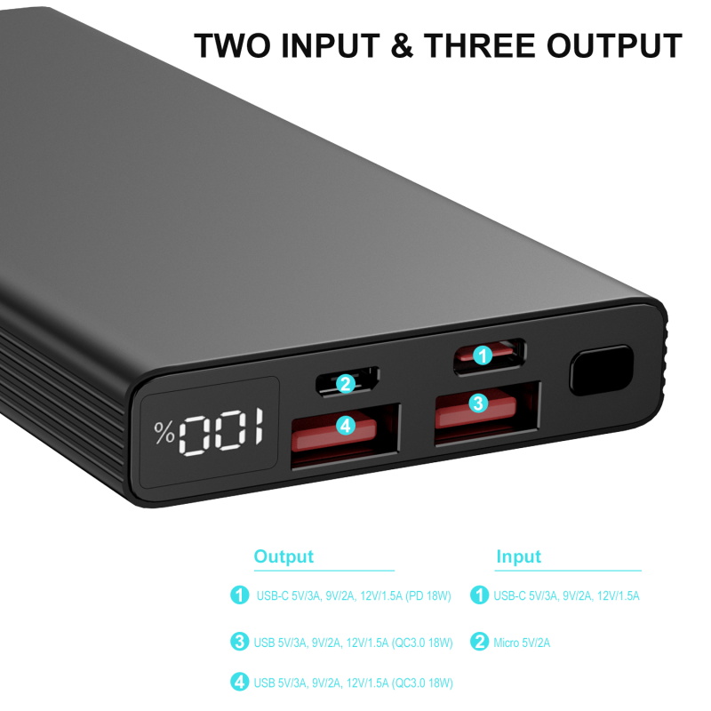 HOME:   Power Banks->MyBat Pro 10000mAh Power Delivery Power Bank (20W) - Black