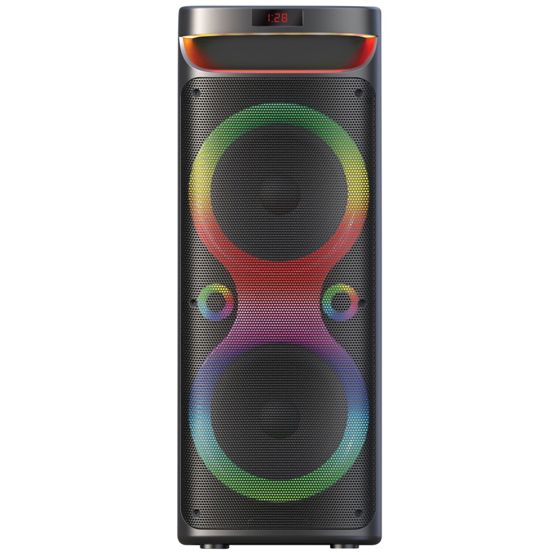 borne 10" X 2 Bluetooth Wireless Speaker, 60W, RGB Lights, Fm, Usb, Microsd And Aux - In Inputs - Black