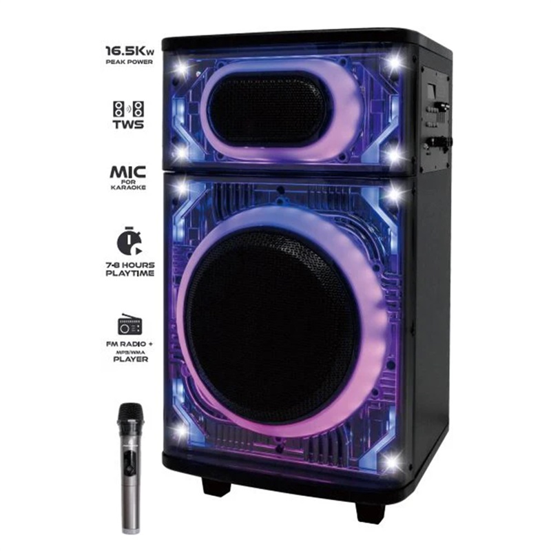 MaxPower GLOW 10 Bluetooth Karaoke Speaker with 10" Sub Woofer, Microphone and LED Lights - Black