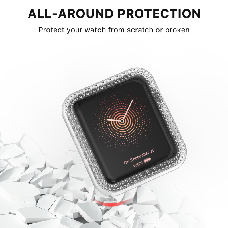 HOME:   Apple Watch Accessories->MyBat Apple Watch Case (with Diamonds) for Apple Watch Series 7 41mm/Watch Series 9 41mm / Watch Series 8 41mm - Transparent Clear