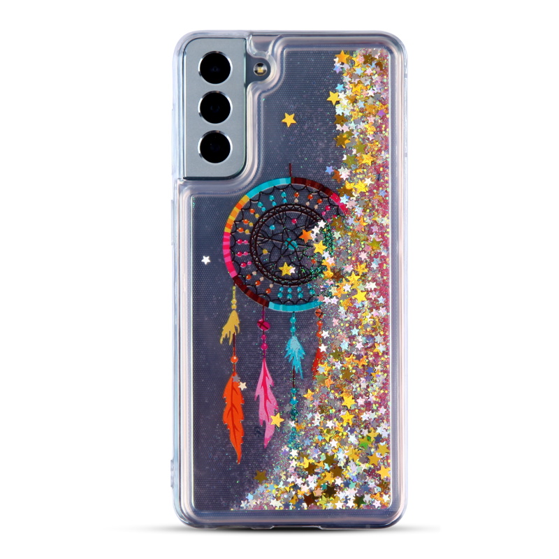MyBat Quicksand Glitter Hybrid Protector Cover for Samsung Galaxy S21 Plus - Dreamcatcher & Gold Stars