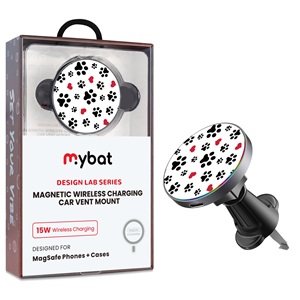 • MyBat Design Lab Magnetic Wireless Charging Vent Mount - Black - Paw Prints and Hearts