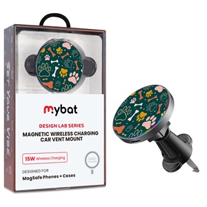 • MyBat Design Lab Magnetic Wireless Charging Vent Mount - Black - Paw Prints & Bones