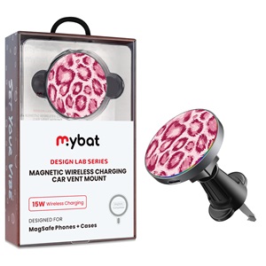 MyBat Design Lab Magnetic Wireless Charging Vent Mount - Black - Pink Leopard Print