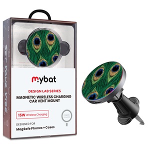 • MyBat Design Lab Magnetic Wireless Charging Vent Mount - Black - Peacock Feathers