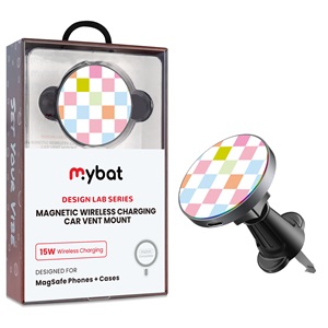 • MyBat Design Lab Magnetic Wireless Charging Vent Mount - Black - Pastel Check