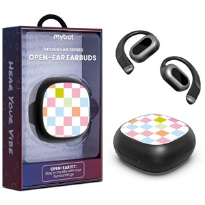• MyBat Design Lab Open-Ear Earbuds - Black - Sky Blue Check