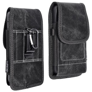 LUXMO Extra Large Vertical Universal Leather Pouch w/ Front Buckle - Black (Retail Packaging)