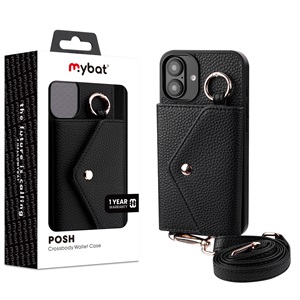 MyBat Posh Crossbody Wallet Case for Apple iPhone 16 Plus - Black