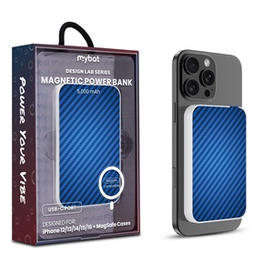 MyBat Design Lab 5000mAh Magnetic Wireless Power Bank - White - Blue Carbon Fiber