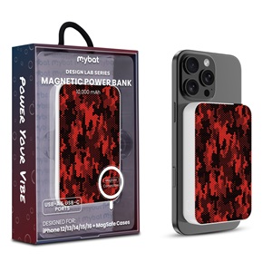 MyBat Design Lab 10000mAh Magnetic Wireless Power Bank - White - Red Digital Camouflage