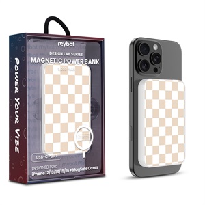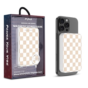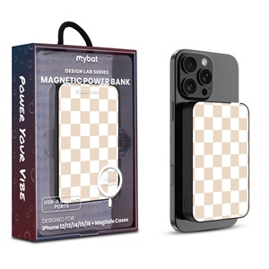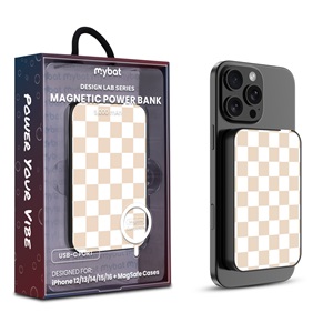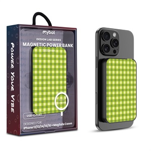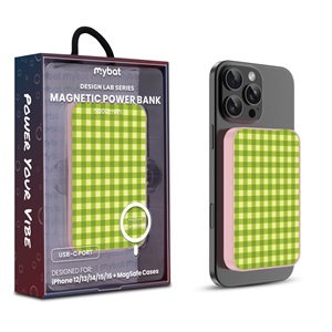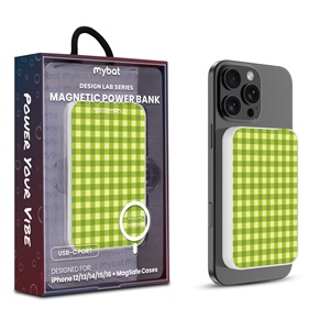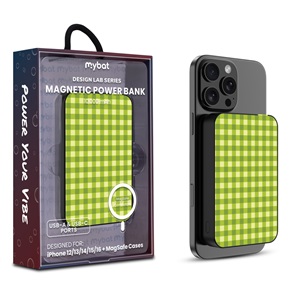 MyBat Design Lab 5000mAh Magnetic Wireless Power Bank - White – Green Gingham